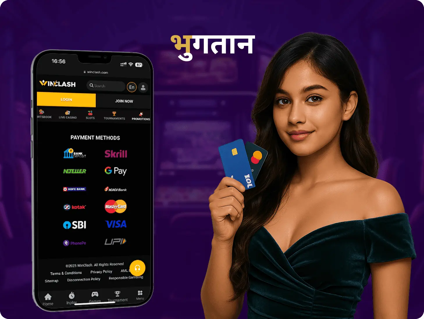 WinClash वेबसाइट उपयोगकर्ताओं को भारतीय रुपये में जमा और निकासी, दोनों के लिए वित्तीय लेनदेन करने हेतु 10 से ज़्यादा भारतीय भुगतान विकल्पों का उपयोग करने की सुविधा देती है। उपयोगकर्ता निम्न का उपयोग कर सकते हैं: